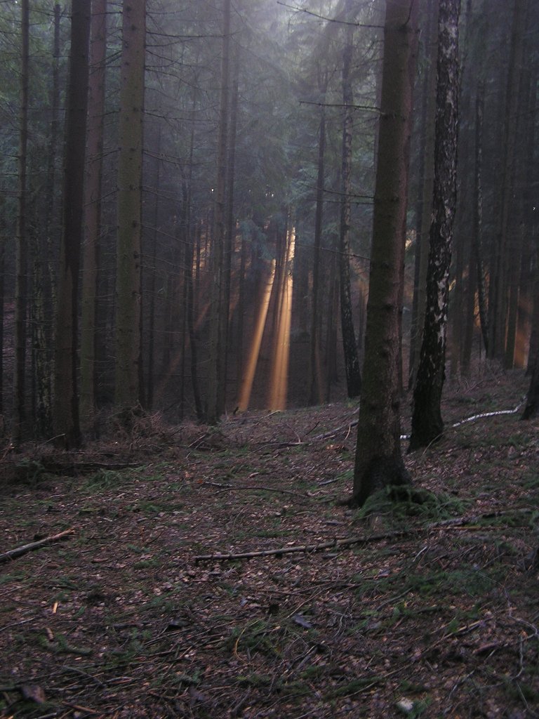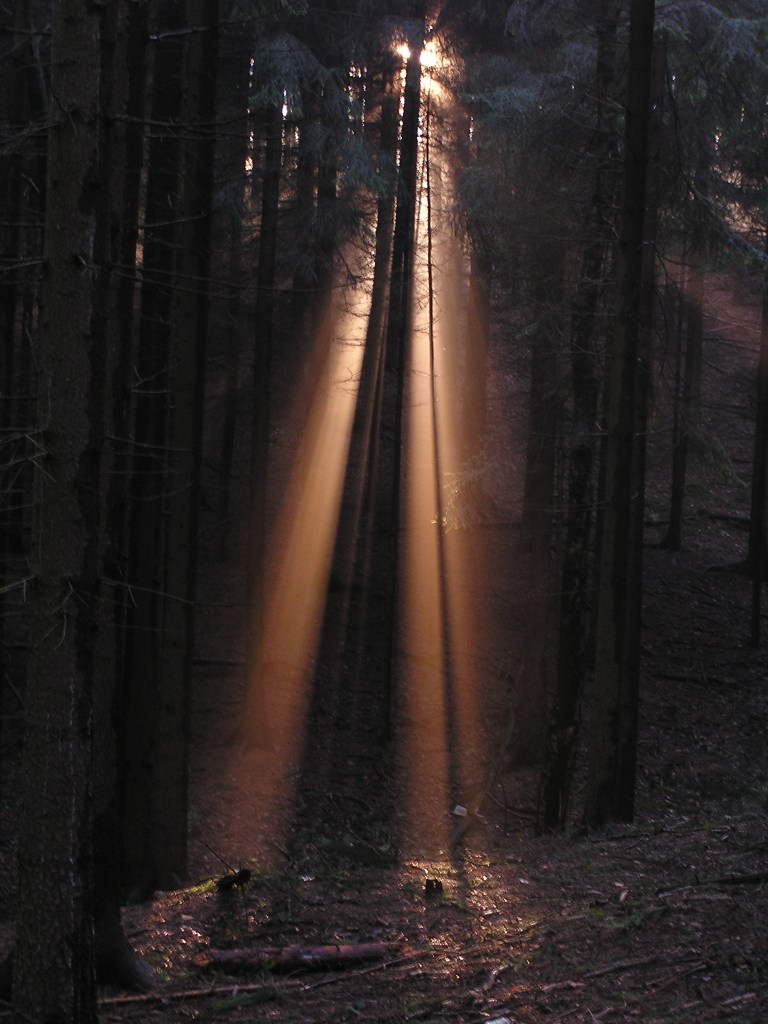 Ein paar Lichtstrahlen kommen durch den dichten Wald. Vielleicht hätten wir dort nach dem Schatz graben sollen.